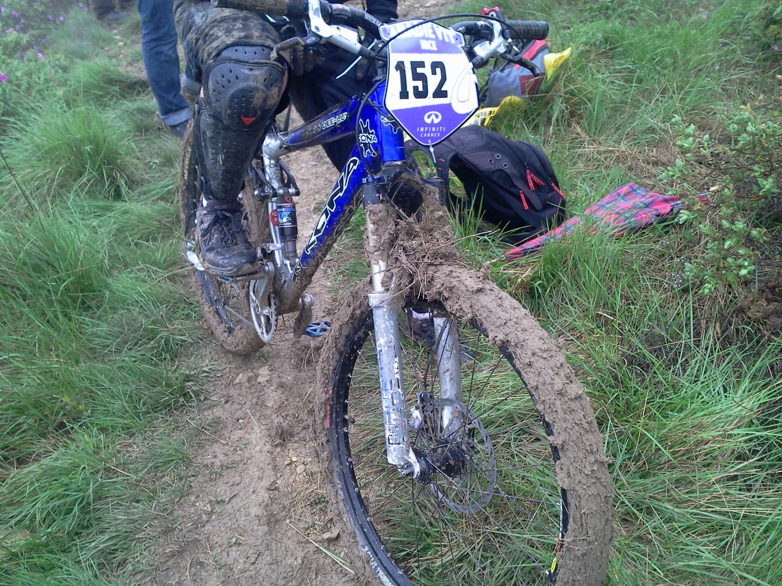 So I started the pedal up after meeting up with Anthony. There was a lot of water on the roads, we were not sure what conditions the trails would be in. Once the road up met the track, we were greeted by a depressing scene: only about 10 people had gone down as the race had just started, yet already there was someone crashing, one girl abandoning as there was too much mud on her bike and one guy who had broken his derailleur, all about 1 minute from the start line. I was not feeling it. But onwards we went to the start.